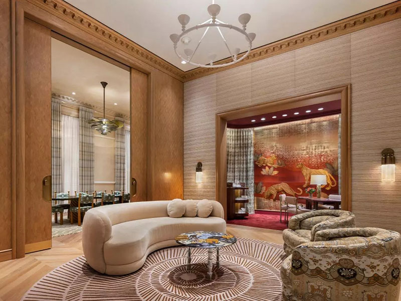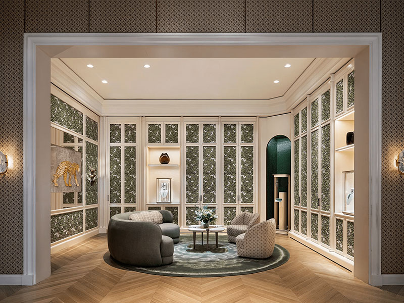The history of Cartier in New York began in 1909 with the arrival of Pierre Cartier in the city. After a legendary transaction, he purchased the Fifth Avenue Mansion in 1917 in exchange for an extraordinary pearl necklace. Architectural designer Laura Gonzalez refreshed the mansion's interior to create a space that is both inviting and luxurious, transforming a former private home into a landmark.