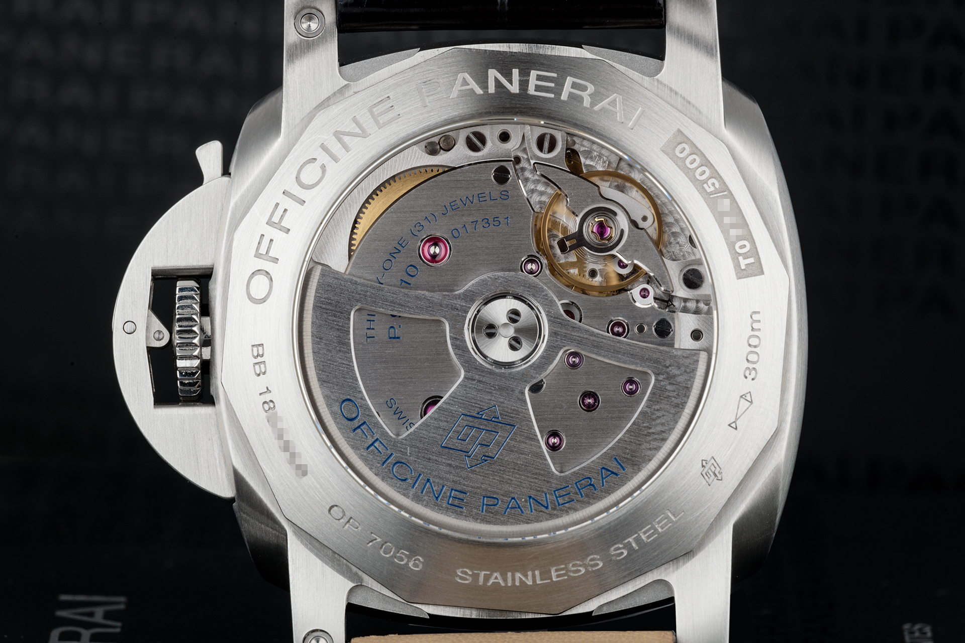 The black "sandwich" dial with luminous Arabic numerals, has a date display at 3 and small seconds at 9 o'clock. The in-house developed automatic mechanical P.9010 calibre movement (visible through the sapphire crystal case back) features twin barrels that increase the power-reserve to an impressive 3 days. Water-resistance is 300m.