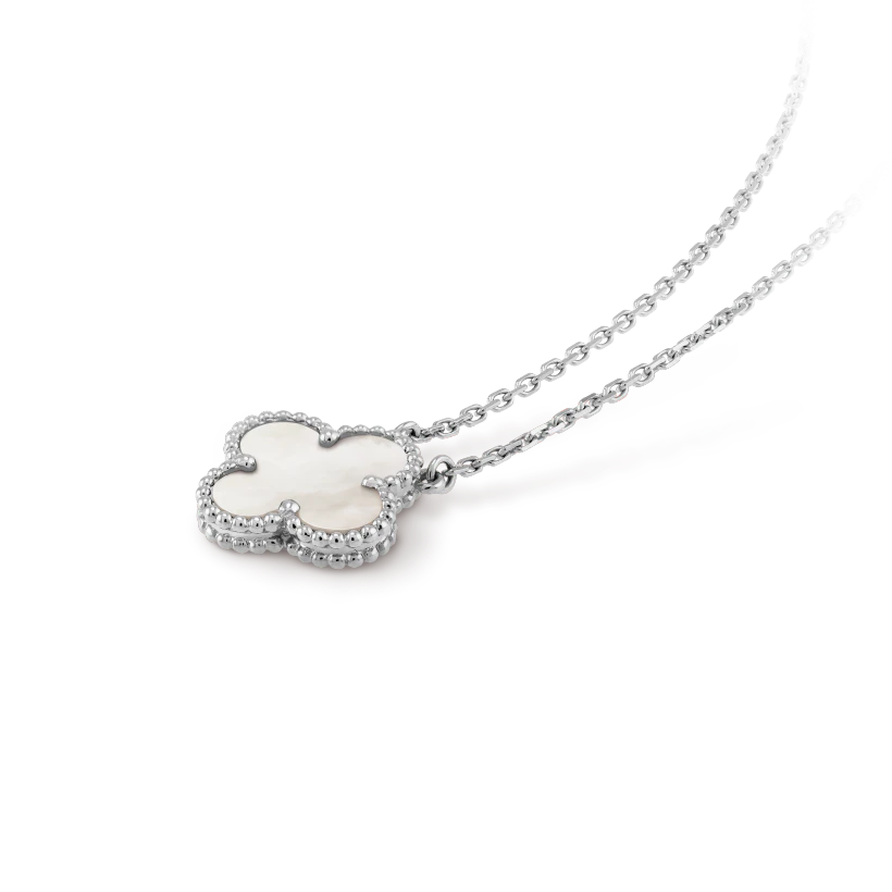 Vintage Alhambra pendant, rhodium plated 18K white gold, white mother-of-pearl.